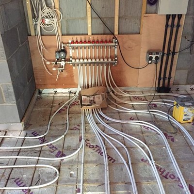 Underfloor heating going down in areas at Warsash project.